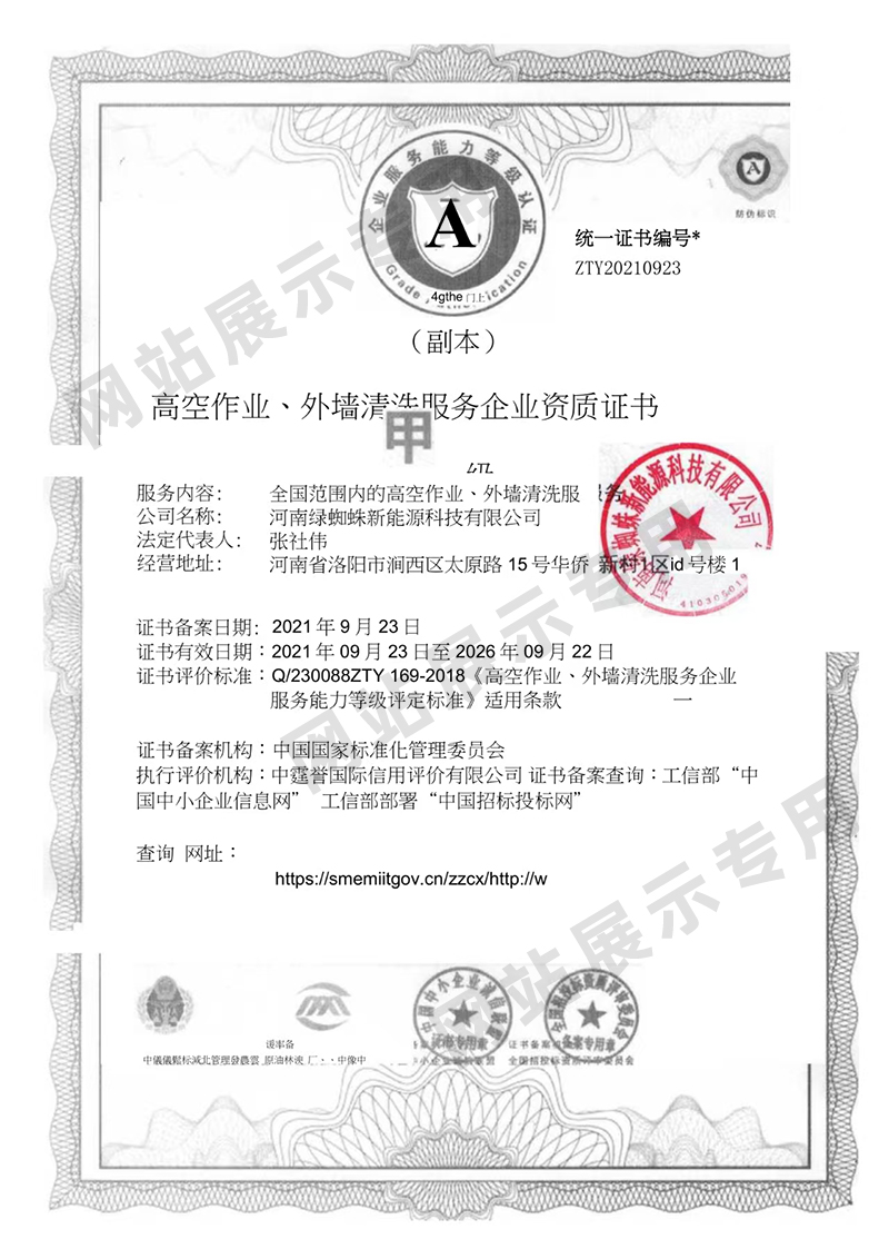 上一個:營業執照下一個:高空清洗懸吊作業企業安全生產證書